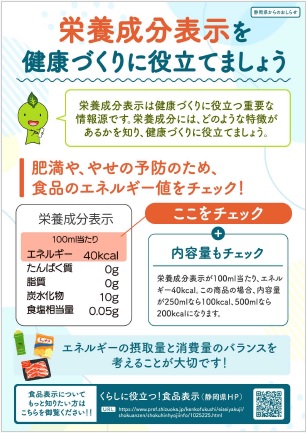 【静岡県衛生課】ちゃっぴーの食品安全インフォメーションR7-13「栄養成分表示を健康づくりに役立てましょう」