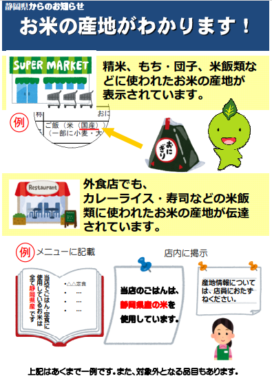 【静岡県衛生課】ちゃっぴーの食品安全インフォメーションR5-15「お米の産地がわかります!」