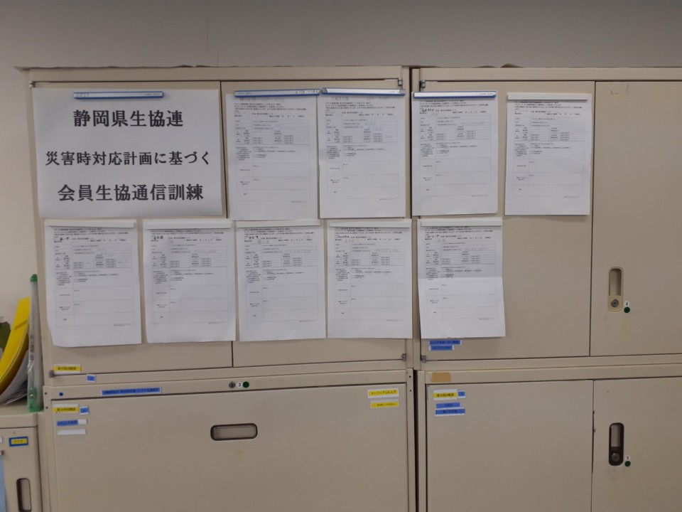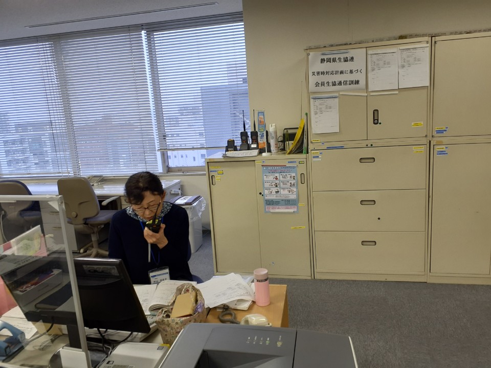 MCA無線機がある5生協(ユーコープ・静岡県労済生協・パルシステム静岡・生活クラブ・スズキ生協)とはMCA無線機を使用し、その他の4生協(静岡県教職員生協・静岡大学生協・あいち生協・浜北医療生協)とは固定電話を使用し、「被災状況連絡シート」の項目について聞き取りを行いました。