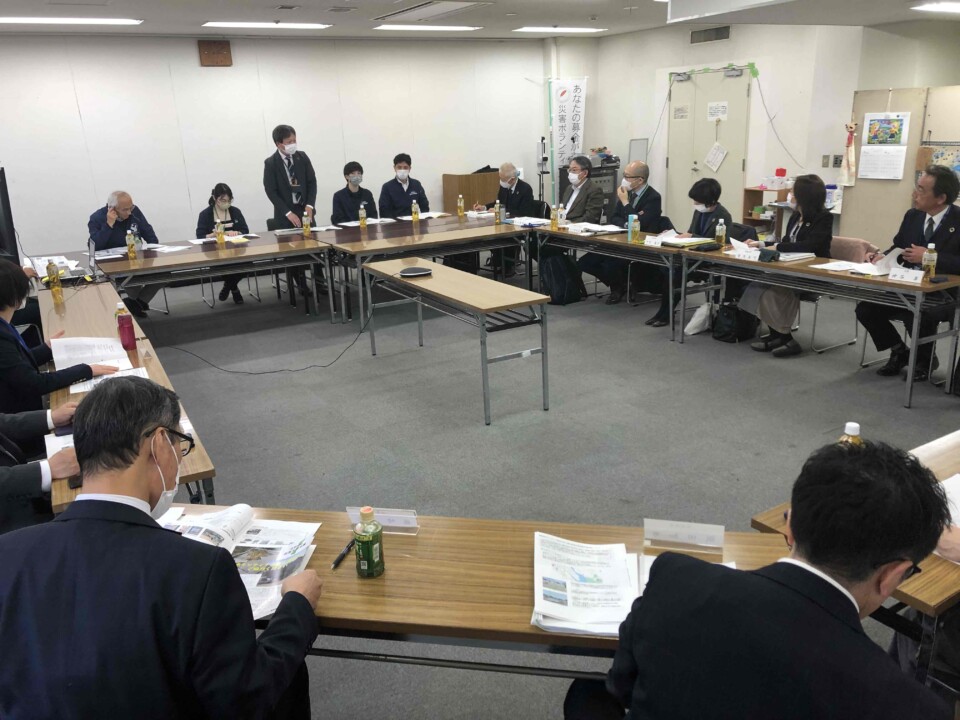 県ボランティア協会鳥羽常務理事より、発災時には活動拠点として、大学や学校、企業の体育館などを貸して、資金の支援をいただけるとありがたいとの話がありました。
