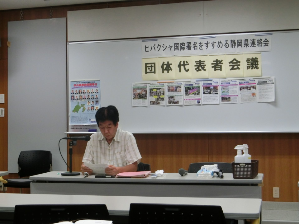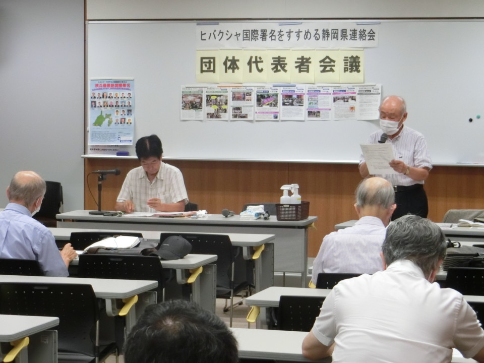 【概要】ヒロシマ・ナガサキの被爆者が訴える核兵器廃絶国際署名(ヒバクシャ国際署名)をすすめる静岡県連絡会は2018年4月に結成され、静岡県内での署名の広がりをめざし活動をすすめてきました。この署名は今年9月をもって一旦終了し国連本部に提出されることから、この9月をもって連絡会としての活動を終了することとし、まとめの会議として開催されました。