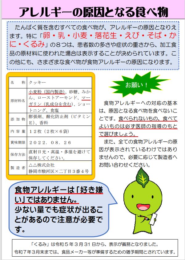 ・食物アレルギーは「好き嫌い」ではありません。等・・・